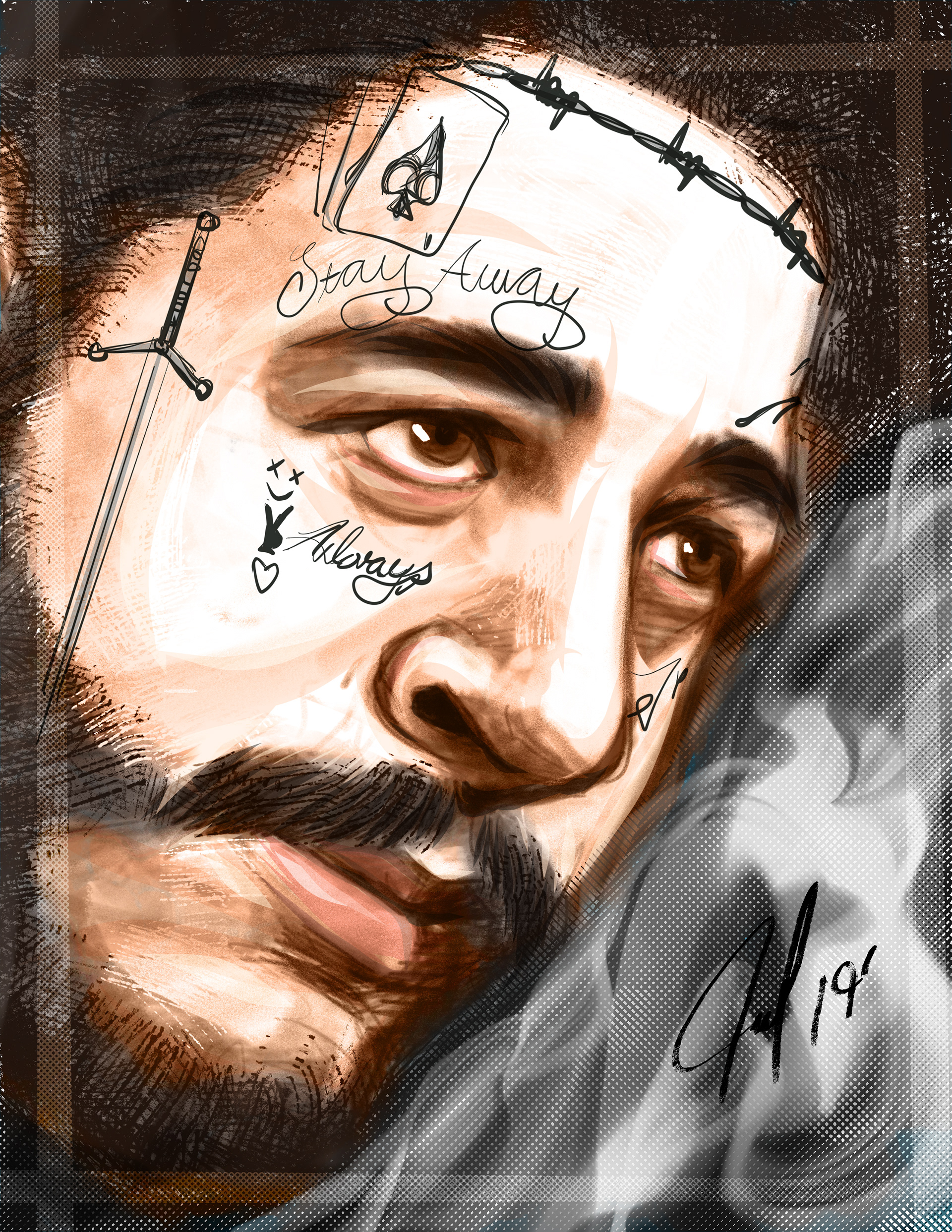 A fun loose drawing of Post Malone in Adobe Fresco.